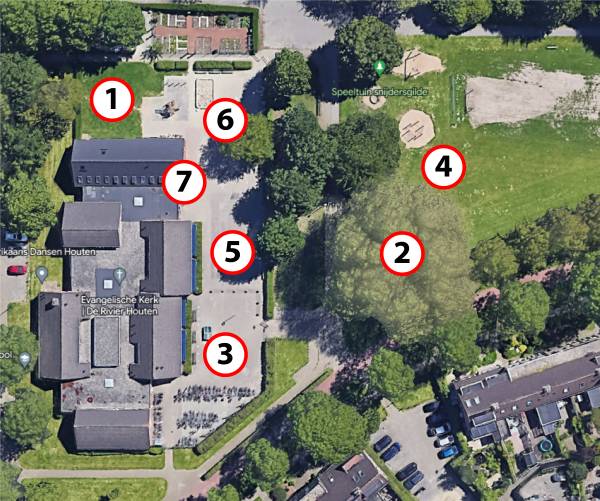 16 groepjes: 7 spellen waarin 2 groepjes tegen elkaar strijden. 2 groepjes hebben pauzemoment (drinken en wat lekkers). De spelonderdelencoördinaten worden van te voren klaar gezet en er staat iemand bij van de leiding om het spel te begeleiden.