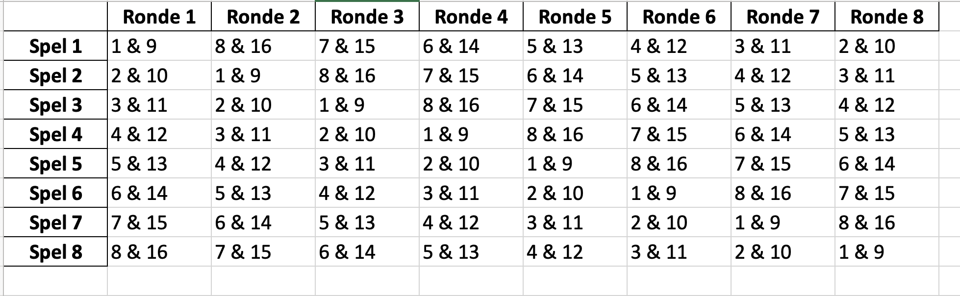 Ronde 1: 1 t/m 8 - bewakers en 9 t/m 16 kunstrovers